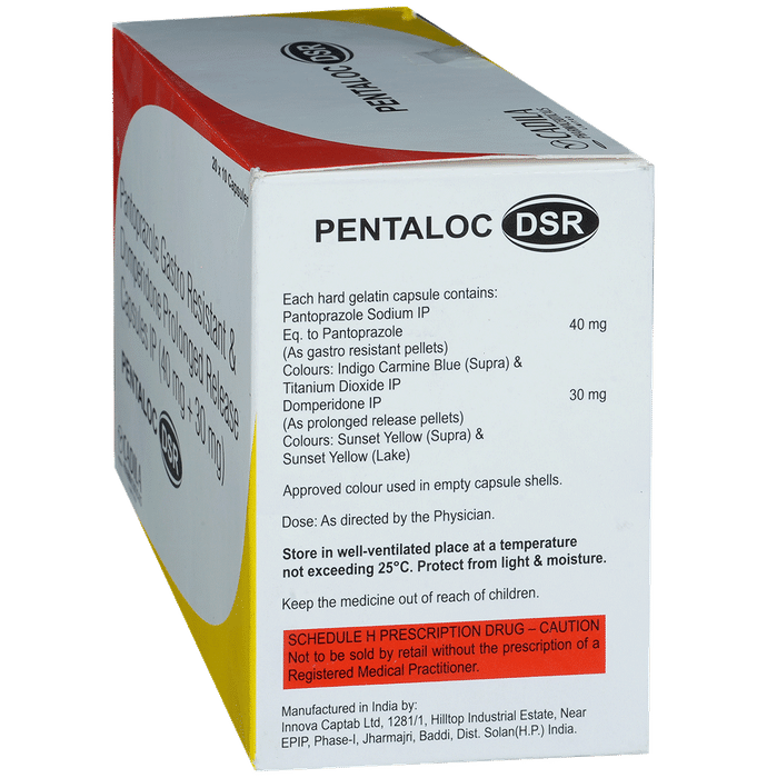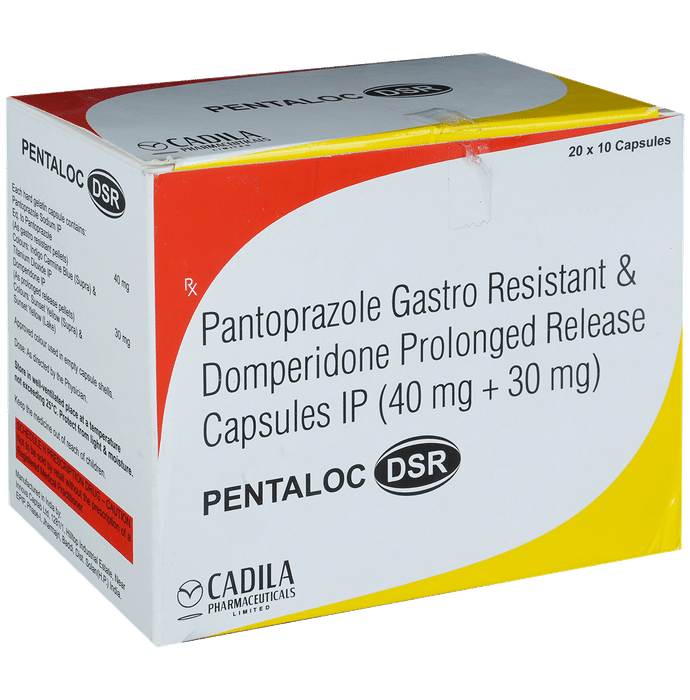 Pentaloc DSR 30mg/40mg Capsule is a prescription medicine used to treat gastroesophageal reflux disease (Acid reflux), dyspepsia (indigestion), and gastritis. It helps treat the conditions by reducing the amount of acid in the stomach thereby relieving symptoms of acidity such as heartburn, stomach pain, or irritation. Pentaloc DSR 30mg/40mg Capsule also neutralizes the acid in the stomach and promotes easy passage of gas to reduce stomach discomfort. It is taken without food in a dose and duration as advised by the doctor. The dose you are given will depend on your condition and how you respond to the medicine. You should keep taking Pentaloc DSR 30mg/40mg Capsule for as long as your doctor recommends. If you stop treatment too early your symptoms may come back and your condition may worsen. Let your healthcare team know about all other medications you are taking as some may affect, or be affected by this medicine.The most common side effects of Pentaloc DSR 30mg/40mg Capsule are diarrhea, vomiting, stomach pain, flatulence, dryness in the mouth, and headache. Most of these are temporary and usually resolve with time. Contact your doctor straight away if you are at all concerned about any of these side effects. This medicine may cause dizziness and sleepiness, so do not drive or do anything that requires mental focus until you know how this medicine affects you. Avoid drinking alcohol while taking Pentaloc DSR 30mg/40mg Capsule as it can worsen your sleepiness. Lifestyle modifications like having cold milk and avoiding hot tea, coffee, spicy food, or chocolate can help you to get better results.Before you start taking this medicine it is important to inform your doctor if you are suffering from kidney or liver disease. You should also tell your doctor if you are pregnant, planning pregnancy, or breastfeeding.
