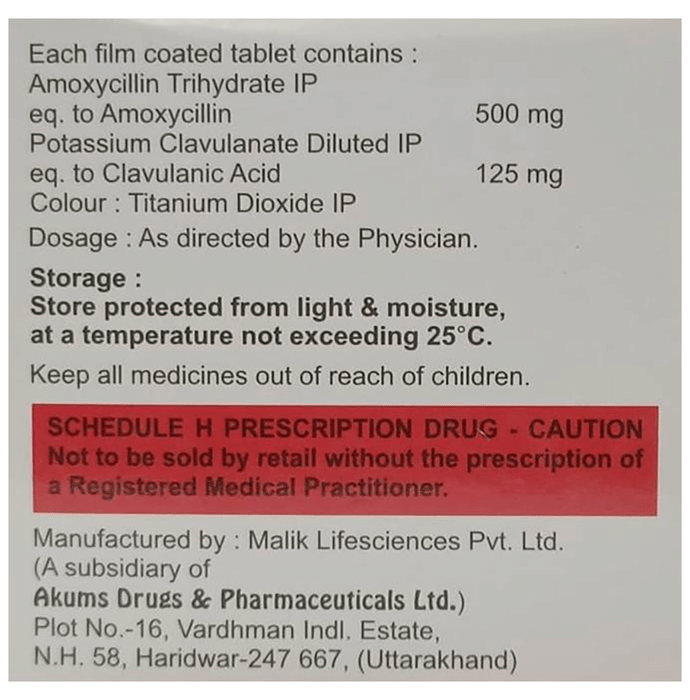 Amoxycillin (500mg) + Clavulanic Acid (125mg)