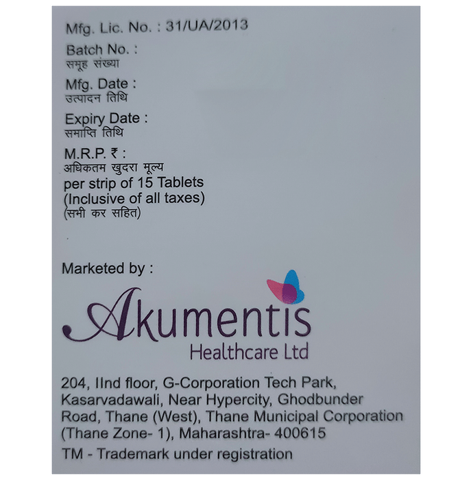 Akumentis Healthcare Ltd | 204, 2nd Floor, G-Corp Tech Park, Kasarvadavali, Near Hypercity, Ghodbandar Road, Thane (West) - 400615. ,Maharashtra, India