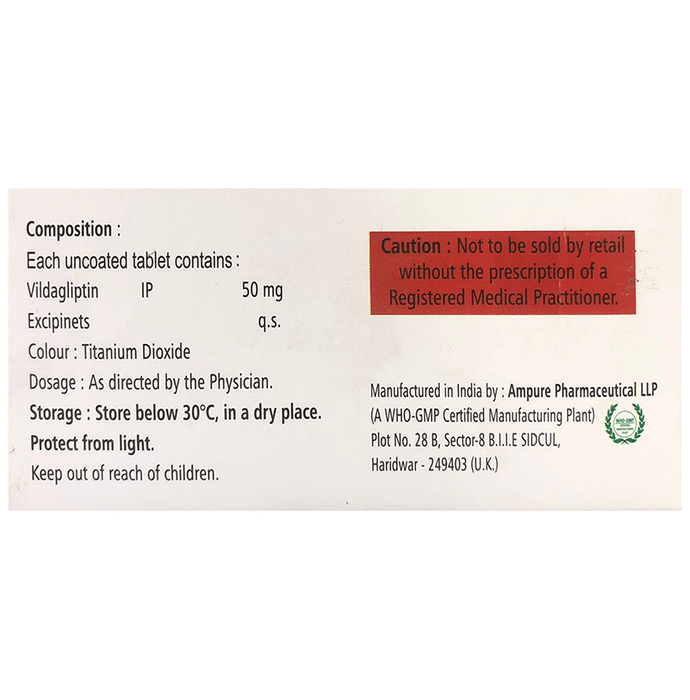 Vidpure Tablet is a medicine used to treat type 2 diabetes mellitus. It is used together with a healthy diet and regular exercise to control blood sugar levels. This helps to prevent serious complications of diabetes like kidney damage and blindness. Vidpure Tablet is normally prescribed when diet and exercise alone or other medicines do not prove sufficient to control your blood sugar level. It may prescribe alone or in combination with other diabetes medicines. It can be taken with or without food. The dose will depend on your condition and blood sugar levels. Use it strictly as advised by your doctor.You should take it regularly at the same time each day to get the most benefit. Do not stop taking the medicine unless advised by your doctor. It is important to stay on the diet and exercise program recommended by your doctor while taking this medicine. Your lifestyle plays a big part in controlling diabetes.The most common side effects of Vidpure Tablet include hypoglycemia, tremor, headache, dizziness, fatigue, and nausea. It is important to recognize the symptoms of hypoglycemia (such as lightheadedness, sweating, dizziness, fainting, and dry mouth) and know how to deal with it. You can carry sugar or glucose candy and have them to control your symptoms if you experience any. Contact your doctor if the side effects do not go away or worry you.Before taking this medicine, let your doctor know if you have ever had kidney disease, heart disease, or pancreas problems. Pregnant or breastfeeding women should also consult their doctor before taking it. Some other medicines you are taking may interfere with this medicine's working. So, make sure your doctor knows about all the other medicines you are using. Limit your alcohol intake while taking this medicine because it can increase your risk of developing low blood sugar levels. You may need regular tests such as kidney function and blood glucose levels to check that the medicine is working properly.