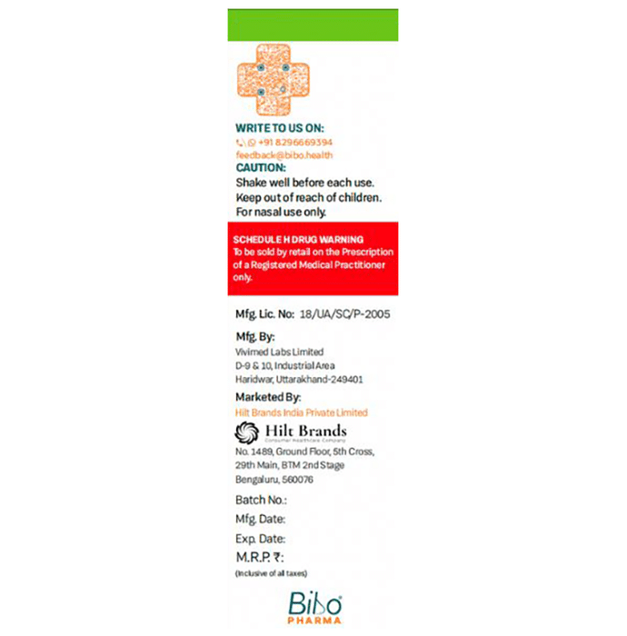 Use this medicine in the dose and duration as advised by your doctor. Check the label for directions before use. Insert the bottle tip into one nostril and close the other nostril. Direct the spray towards the sides of your nostril, away from the cartilage dividing the two sides of your nose. As you spray, breath gently and keep the head upright. Repeat the same process for the other nostrils.