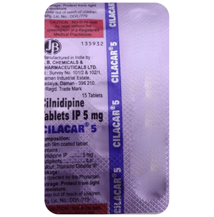 Cilacar 5 Tablet is a medicine used to treat high blood pressure (hypertension). It belongs to a class of medicines known as a calcium channel blocker which helps to lower blood pressure. This helps prevent heart attacks and strokes. It may also be prescribed to prevent angina (heart-related chest pain). Cilacar 5 Tablet may be prescribed alone or along with other medicines. The dose depends on the severity of your condition. You can take it at any time of day, with or without food, but it is best to take it at the same time each day. Keep taking it for as long as advised by your doctor. Do not stop this medicine on your own, even if you feel well because high blood pressure often has no symptoms. This makes it hard to identify any sudden spike and if you stop taking it, your condition may get worse.Keeping active with regular exercise, reducing your weight, and eating a healthy diet will also help control your blood pressure. Follow your doctor