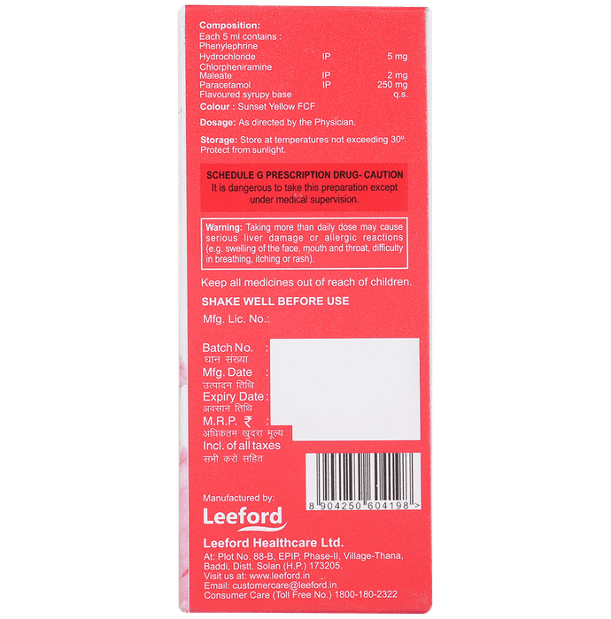 Chlorpheniramine Maleate (2mg/5ml) + Paracetamol (250mg/5ml) + Phenylephrine (5mg/5ml)