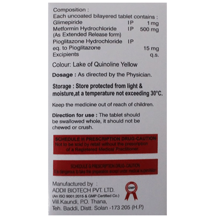 Glimepiride (1mg) + Metformin (500mg) + Pioglitazone (15mg)