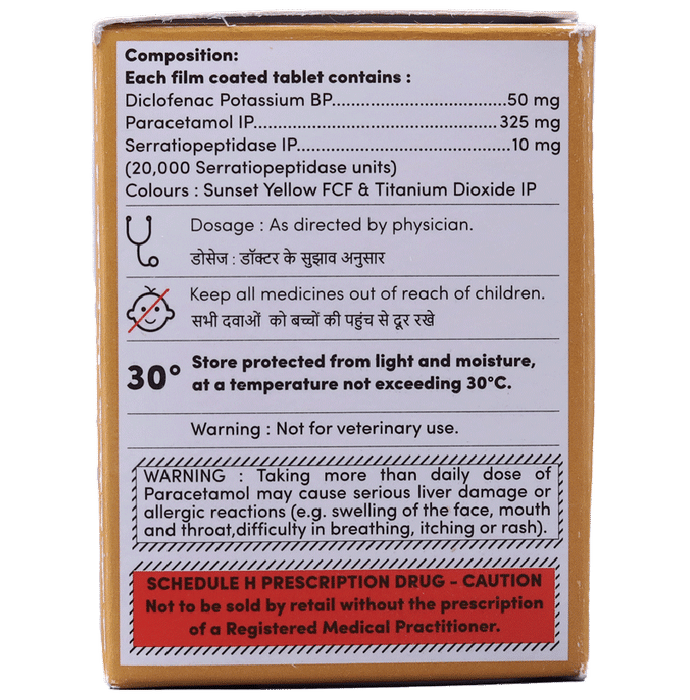 Diclofenac (50mg) + Paracetamol (325mg) + Serratiopeptidase (10mg)