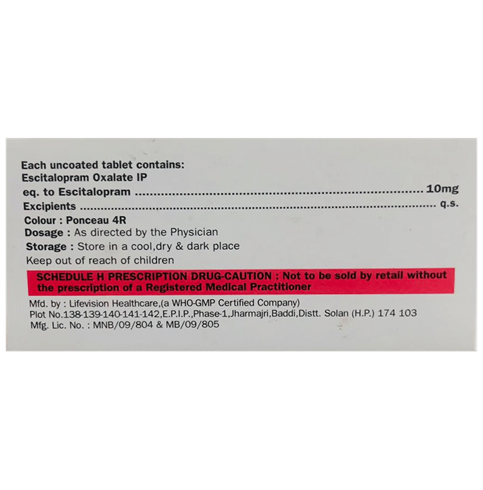 Esciten Tablet is widely prescribed to treat depression and other mental health conditions like anxiety, panic disorder, and obsessive-compulsive disorder. It is a type of antidepressant known as a selective serotonin reuptake inhibitor (SSRI). Esciten Tablet helps recover from depression by improving mood and relieving anxiety and tension. It can be taken with or without food. The dose and how often you need it will be decided by your doctor based on the amount needed to control your symptoms. Your doctor may start you on a lower dose and increase it gradually. Do not change the dose or stop taking it without talking to your doctor, even if you feel well. Doing so may make your condition worse or you may suffer from unpleasant withdrawal symptoms such as anxiety, restlessness, palpitations, dizziness, sleep disturbances.To get the most benefit, take this medicine regularly at the same time each day. Your doctor may advise you to take it in the morning if you have trouble sleeping. It may take a few weeks before you start feeling better. Let your doctor know if you do not see any improvement even after 4 weeks.Some common side effects of this medicine include nausea, fatigue, increased sweating, insomnia (difficulty in sleeping), decreased sexual drive, delayed ejaculation, and women may experience difficulties achieving orgasm. Some people may experience sleepiness after taking this medicine. Let your doctor know straight away if you develop any sudden worsening of mood or any thoughts about harming yourself.Before taking Esciten Tablet, you should tell your doctor if you have epilepsy (seizure disorder or fits), diabetes, liver or kidney disease, any heart problems, or are currently taking medicines for depression known as MAO inhibitors. These may affect your treatment. Please tell your doctor about all the medicines you are taking to make sure you are safe.
