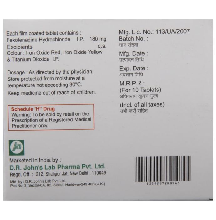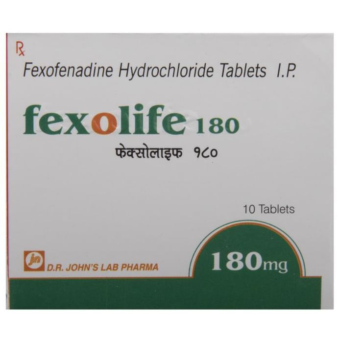Fexolife 180 Tablet is an anti-allergy medicine used in the treatment of allergic symptoms such as runny nose, congestion or stuffiness, sneezing, itching, swelling, and watery eyes. It also helps treat skin allergies with itching, redness, or swelling. Fexolife 180 Tablet may be taken with or without food, in the dose and duration as advised by the doctor. The dose you are given will depend on your condition and how you respond to the medicine. You should keep taking this medicine for as long as your doctor recommends. Do not stop taking it without consulting your doctor.The most common side effects are headache, drowsiness, dizziness, and nausea. Most of these are temporary and usually resolve with time. Please consult your doctor if any of these side effects do not resolve or persist for a longer duration.Do not self-medicate or recommend your medicine to another person even if you see the similarity in symptoms. Consult your doctor to get the most benefit. Inform your doctor if you are suffering from any problems related to the kidneys, liver, or heart. Pregnant and breastfeeding mothers should not take this medicine without consulting a doctor.