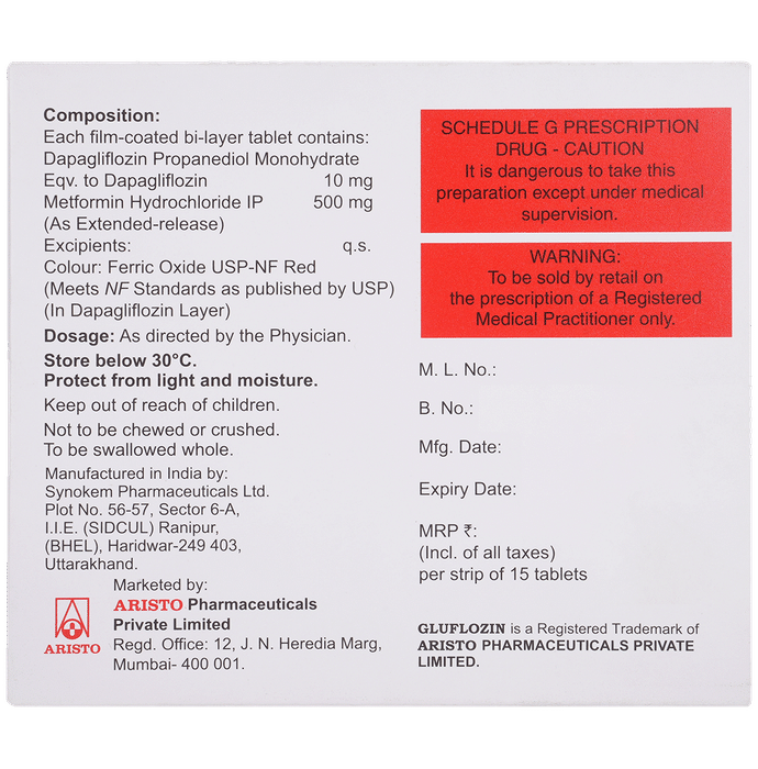Dapagliflozin (10mg) + Metformin (500mg)