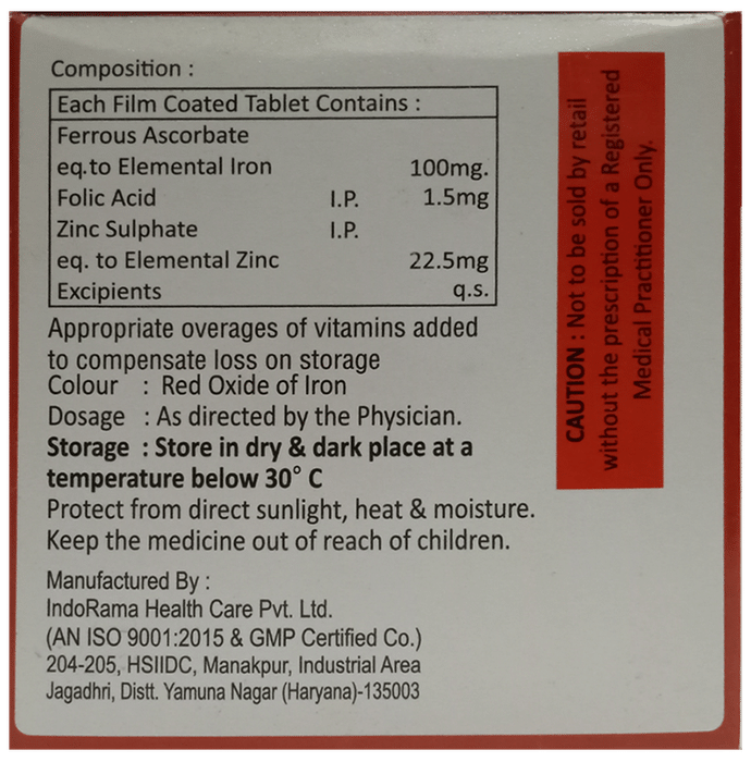 Ferrous Ascorbate (100mg) + Folic Acid (1.5mg) + Zinc (22.5mg)