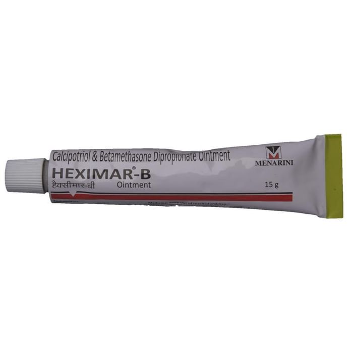 Heximar-B Ointment is a prescription medicine having a combination of medicines that is used to treat psoriasis. It provides relief from redness, itching and swelling. It decreases the overproduction of skin cells. Heximar-B Ointment should be used in the dose and duration as advised by your doctor. Wash your hands before using this medicine. It is advised to check the label for directions before use. It is for external use only.The common side effects of this medicine include rash, itching, and swelling at the application site. If these side effects or any other symptoms which you think are because of this medicine persist for a longer duration, please consult your doctor.Do not use this medicine more than the recommended dose. Inform your doctor if you have known allergies from this medicine. Inform your doctor if you are pregnant or are suffering from any other disease. This medicine is safe to use in breastfeeding mothers.